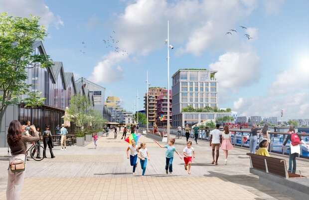 - Ensuite, en faire un lieu de vie et animé, grâce à l’aménagement d’un large bord à quai dédié aux bars et restaurants, orienté plein Sud